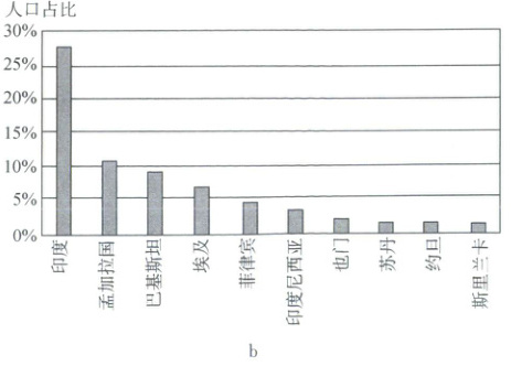 卡塔尔地处波斯湾沿岸(图a),大部分地区为覆盖沙土的荒漠,人口与城市主要分布在沿海地区,国内拥有丰富的油气资源。凭借每年大量的资源出口,其人均国内生产总值常年都保持在世界前列。卡塔尔是一个典型的移民国家,2023年总人口约293万人,其中卡塔尔籍公民约占15%,外籍人口主要来自印度、巴基斯坦和东南亚国家(图b)。2022年11月20日—12月18日,第22届国际足联世界杯在卡塔尔举行,据统计,比赛期间约有120万外国球迷到现场观赛,对当地影响空前。