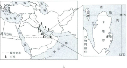 (1)分析卡塔尔人口和城市主要分布在沿海地区的原因。(6分)