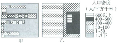 关键点:根据图示人口密度大小和分布可以分析出甲、乙两地大致的地形特点