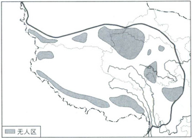 [湖北名校联盟2025高一联考]“无人区”是指长期闲置的土地或不适合人类居住的地区。中国有四大无人区——青海的可可西里、西藏北部的羌塘、新疆高耸壮丽的阿尔金和遍地荒漠的罗布泊。研究表明,青藏高原独特的地理环境限制了人口的自然分布与有序发展,居民点集中分布在藏南谷地和川藏高山峡谷区等区域,形成了我国面积广大的“无人区”。下图为青藏高原无人区分布图。据此完成下面小题。