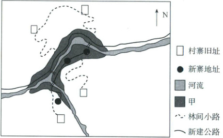 [江苏扬州大学附属中学2025高一期末]我国西南某地区村寨早期分布在河谷半山腰,呈点状松散布局,后来迁居建立新寨。下图示意该地区村寨的空间布局及其演化。读图,完成下面小题。