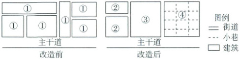[河南安阳一中2024月考]下图是某市旧城区商业街改造前后建筑布局及功能分区平面示意图。据此完成下面小题。