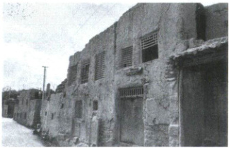 [广东深圳2025高一期中]鄯善县麻扎村于2012年入选第一批中国传统村落名录。村中保存了大量黄黏土建造的传统民居,被称为“中国第一土庄”。该地建筑形态具有墙体厚、窗口小的特点。当地民居一般为两层,居民在不同季节居住在不同的楼层中,呈现出“半转移式生活方式”。下图为麻扎村建筑景观图。据此完成下面小题。