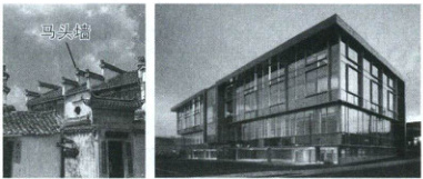 [安徽师范大学附属中学2025高一期中]读徽州古村落景观图和现代玻璃幕墙商业街景观图,完成下面小题。