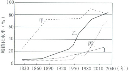 4.与图中的发达国家相比,其他三个国家目前所处城镇化阶段的表现为 (