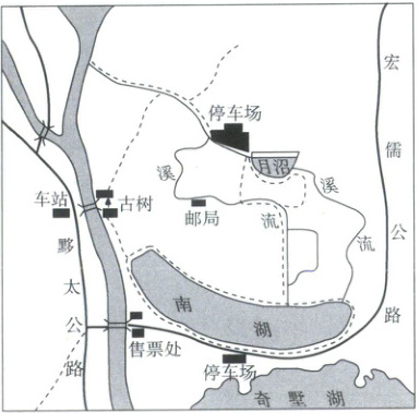 [安徽江南十校联盟 2025 高一联考]皖南山区特色鲜明的古村落星罗棋布,江南水乡宏村是徽商文化的瑰宝。村落依据地势巧妙营建,四周被连绵群山环抱,一条潺潺溪流穿村蜿蜒而过。下图为皖南山区宏村村落布局示意图。据此完成下面小题。