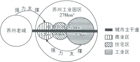 7. 从苏州老城主干道向东延伸串联中新合作区各功能区,体现的布局思路是 (