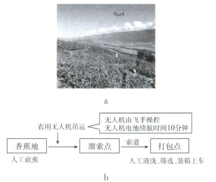 [安徽六安一中2025高一月考]香蕉产业是云南红河流域的重要经济支柱,其种植区(图a)一半以上地处偏远地带,山高坡陡。近两年当地利用农用无人机吊运技术形成香蕉采收流水线模式(图b),蕉农的收益大大增加。据此完成下面小题。