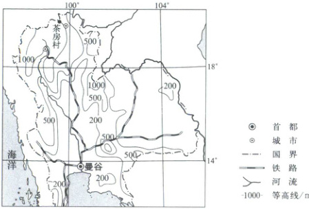 [山东省实验中学 2025 高一期中]茶房村是泰国著名的茶叶生产基地(下图),生产的酸茶主要销往泰北山区,红碎茶主要销往曼谷及周边地区。20 世纪 90 年代,茶房村建立了几家大型茶叶加工厂,使茶叶生产从分散走向集中。据此完成下面小题。