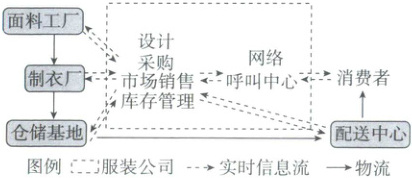 [湖南长沙一中2024学业水平模拟测试]我国某新型服装公司位于上海的一栋写字楼内,既没有自己的制衣工厂,也没有自己的销售门店。下图为该服装公司的生产、销售流程示意图。据此完成下面小题。