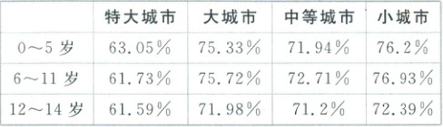 [广东珠海 2025 高一中期中]流动人口作为城市的建设者和贡献者,其子女随迁状况越来越受到国家的重视。过去人们主要关注特大城市定居门槛高,流动人口子女随迁比例低的问题,但近年统计发现,中等城市的流动人口子女随迁比例也相对偏低。下表示意各等级城市不同年龄段流动人口子女随迁状况。据此完成下面小题。