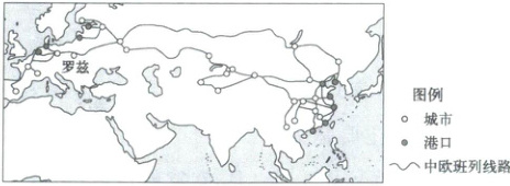 热点情境[江西新余一中 2025 高一期中]2025 年 6 月,往来于我国与丝绸之路经济带沿线各国的铁路货运“中欧班列”累计开行突破 11 万列,运送的货物品类和数量比以往更多,在返程回国时的集装箱空箱率也持续降低。下图为中欧班列线路示意图。据此完成下面小题。