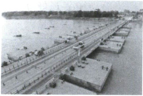 [北京师范大学附属中学2025高一期末]山东省境内有多座黄河大桥和54座黄河浮桥。浮桥指用船或浮箱代替桥墩,浮在水面的桥梁。浮桥需根据水情变化在一年中进行多次拆解和安装。下图为浮桥景观图。读图,完成下面小题。