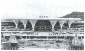 [四川广安2025高一期末]重庆东站,这座被誉为全国最大特等高铁站的宏伟建筑,坐落于重庆市南岸区茶园新区东南侧。它不仅是重庆市的重要综合性交通枢纽,更是重庆市“米字形”高铁网和“八纵八横”高铁网络的关键节点。多条重要的铁路线都交会于此。下图是重庆东站景观图。据此完成下面小题。