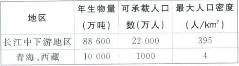 4. 青海、西藏资源环境承载力远远低于长江中下游地区的主要原因有 (