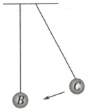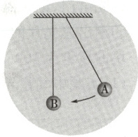 B球摆到和A球被起时同样的高度。忽略空气阻力,机械能守恒。