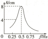 3. (多选)一个单摆在地球表面做受迫振动,其共振曲线(受迫振动的振幅$A$与驱动力频率$f$的关系)如图所示,则(
