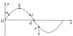 【典例 4】(源自鲁科版教材改编)(波的图像的应用)(多选)一列简谐横波沿 $ x $ 轴传播,在某时刻波的图像如图所示。已知此时质点 $ e $ 的运动方向向下,则