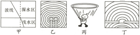 )A.甲图,水波由深水区传播至浅水区,传播