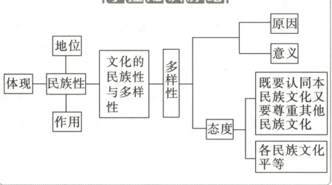 5.①文化具有多样性。每一个国家和民族的文化都扎根于本国本民族的土壤之中,各国和各民族的政治、经济等社会条件不同,形成了各具特色的民族文化。②文化多样性是发展本民族文化的内在要求,也是实现世界文化繁荣的必然要求。各国历史文化和社会制度差异自古就存在,是人类文明的内在属性。只要能符合国情民意,是为人类进步事业作出贡献的不同民族文化,就能为推动人类文明进步提供强大的动力。③我们要在坚持各民族平等的基础上,尊重差异,理解个性,既要认同本民族文化,又要尊重其他民族文化,相互借鉴,求同存异,共同促进人类文明繁荣进步。