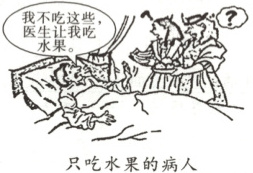 1. [教材P39漫画变式练]下图漫画《只吃水果的病人》中的言论错误之处是(