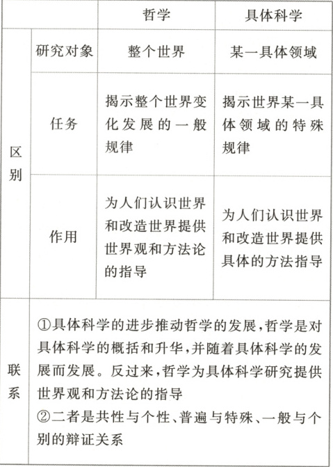 5.①哲学是对具体科学的概括和升华,具体科学的进步推动哲学的发展。恩格斯的观点体现了这一点。②哲学为具体科学研究提供世界观和方法论的指导。钱学森和李振声的观点体现了这一点。