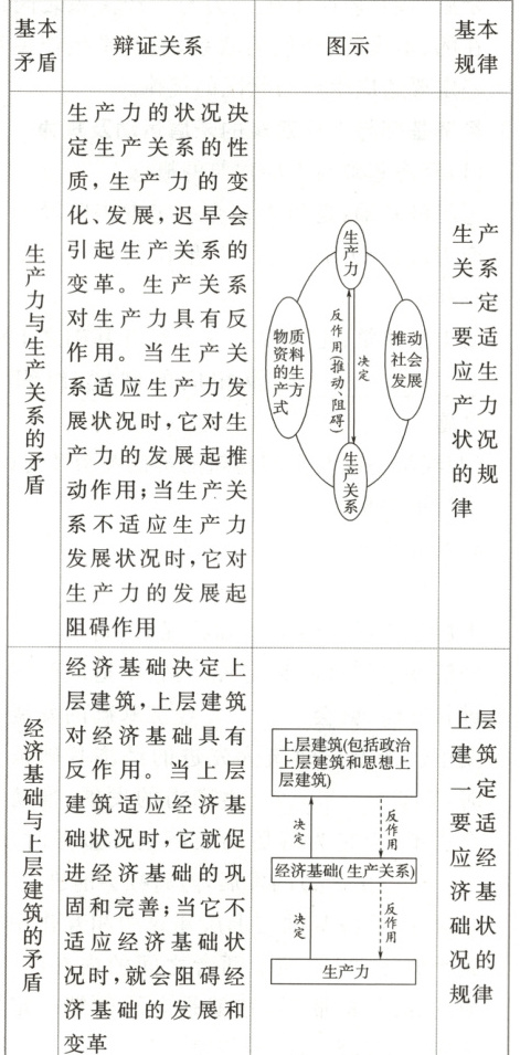 | |社会基本矛盾运动|生产力与生产关系的矛盾|贯穿人类社会始终的基本矛盾|
