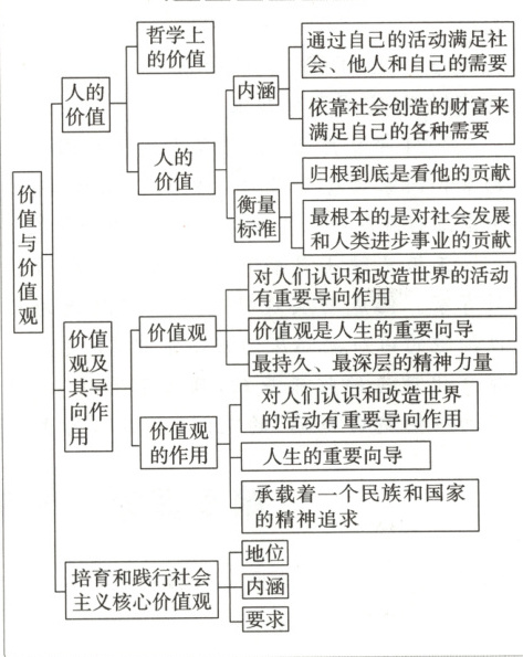 3. A [材料中诗句的大意是:只要对国家有利,即使牺牲自己的生命也心甘情愿,决不会因为自己可能会受到祸害而躲开,这体现了人的价值主要在于对社会的贡献,A符合题意。人的价值是社会价值和自我价值的统一,是奉献与索取的统一,“不应考虑个人利益”的说法错误,B排除。人既是价值的创造者,又是价值的享受者,但材料诗句未体现人是价值的享受者,C不符合题意。对一个人的价值的评价归根到底是看他的贡献。人的贡献是多方面的,可以是对某个人或某个集团的贡献,但最根本的是对社会发展和人类进步事业的贡献,D错误。]