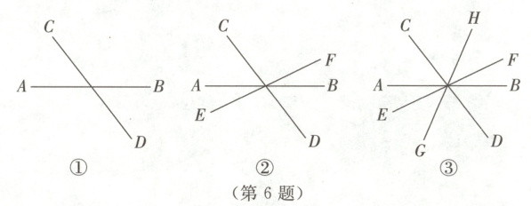 对对顶角;(4)研究(1)~(3)小题中直线条数与对顶角的对数之间的关系,若有$n$条直线相交于一点,则可形成多少对对顶角?
