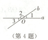 4. 如图,直线$a$,$b$相交于点$O$,因为$\angle1 + \angle2 = 180^{\circ}$,$\angle3 + \angle2 = 180^{\circ}$,所以$\angle1 = \angle3$,这是依据(