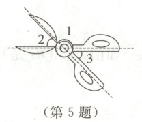 5. 如图,一把张开的剪刀,给我们两条直线(虚线)相交的形象,则图中$\angle1$,$\angle2$,$\angle3$之间的关系不一定成立的是()