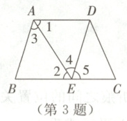 3. 如图,点$E$在$BC$上,下列条件中,不能判定$AB// DE$的是 (