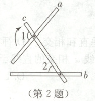 2.如图,将木条$a$,$b$与$c$钉在一起,$\angle 1=75^{\circ}$,$\angle 2=55^{\circ}$,要使木条$a$与$b$平行,木条$a$旋转的度数至少是
