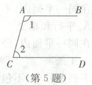 5.如图,$\angle 1=105^{\circ}$,$\angle 2=75^{\circ}$,则$AB$与$CD$的位置关系是