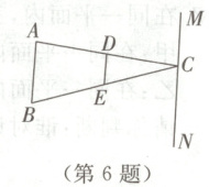 6.如图,已知$\angle MCA=\angle A$,$\angle DEC=\angle B$,请判断$DE$与$MN$的位置关系,并说明理由。