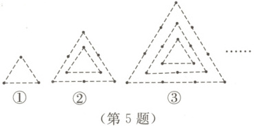 5. 如图所示的图形都是由同样大小的棋子按一定的规律组成的,其中第①个图形有 3 颗棋子,第②个图形一共有 9 颗棋子,第③个图形一共有 18 颗棋子,……,则第⑥个图形中棋子的颗数为