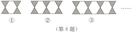 8. 把三角形按如图所示的规律拼图案,其中第①个图案中有$4$个三角形,第②个图案中有$6$个三角形,第③个图案中有$8$个三角形,…,按此规律排列下去,则第⑧个图案中三角形的个数为 (