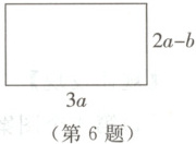 6. 如图,长方形的长是$3a$,宽是$2a - b$,则长方形的周长是 (