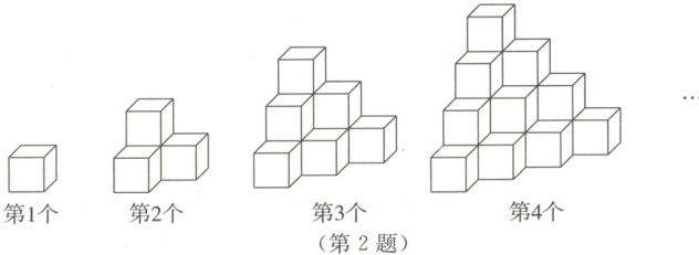 2. 如图是由棱长为 1 的正方体搭成的立体图形,第 1 个图形由 1 个正方体搭成,从上面可以看到 1 个正方形;第 2 个图形由 4 个正方体搭成,从上面可以看到 3 个正方形;第 3 个图形由 10 个正方体搭成,从上面可以看到 6 个正方形;⋯ .依此类推,搭成第 200 个图形,从上面可以看到正方形的个数是