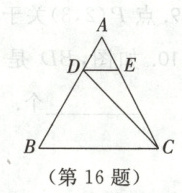16. (6 分)如图,在$\triangle ABC$中,点$D,E$分别在$AB,AC$上,且$\frac {AD}{DB} = \frac {AE}{EC}$. 已知$S_{\triangle ADE} = 2$,$S_{\triangle DBC} = 12$,求$S_{\triangle ABC}$.