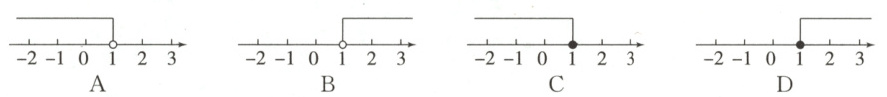 1. 二次根式$\sqrt{x - 1}$在实数范围内有意义,则$x$的取值范围在数轴上表示正确的是
