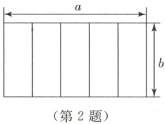 2. 如图,把一个矩形划分为5个全等的小矩形,若要使每一个小矩形与原矩形相似,则原矩形的边$a$,$b$应满足的条件是
