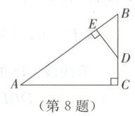 8. 如图,$\angle ACB=90^{\circ},DE\perp AB$,垂足为$E,AB=10,BC=6$,求$\sin\angle BDE$的值.