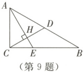 9. 如图,已知在$Rt \bigtriangleup ABC$中,$\angle ACB=90^{\circ},CD$是斜边$AB$上的中线,过点$A$作$AE\perp CD$,$AE$分别与$CD,CB$相交于点$H$,且$AH=2CH$,求$\sin B$的值.