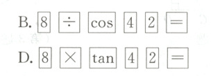D.$8\ \boxed{×}\ \boxed{\tan}\ 4\ 2\ \boxed{=}$