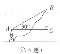6. [新情境]“重温红色记忆,传承红色基因”,某中学的学生参加红色研学活动,爬山体验长征精神.如图所示的是下山时所用的一段索道的示意图,已知$A$,$B$两点间的距离为$30\ m$,$\angle BAC = 30^{\circ}$,则缆车从$B$点到达$A$点的过程中,下降的高度($BC$的长)为 (