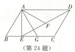 24. (12 分) 如图,在平行四边形 ABCD 中,AE 是 BC 边上的高,点 F 是 DE 的中点,AB 与 AG 关于 AE 对称,AE 与 AF 关于 AG 对称.