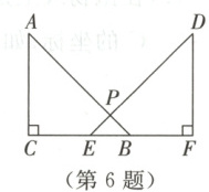 6. 如图,$\triangle ABC$ 与 $\triangle DEF$ 是两个全等的等腰直角三角形,$BC = EF = 8$,$\angle C = \angle F = 90°$,且点 $C, E, B, F$ 在同一条直线上,将 $\triangle ABC$ 沿射线 $CB$ 方向平移,直到点 $C$ 与点 $E$ 重合,$AB$ 边与 $DE$ 边相交于点 $P$,设 $CE = x$,$\triangle PBE$ 的面积为 $S$.