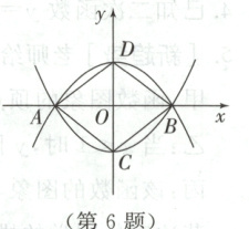 6. 如图,抛物线$y = ax^{2} - 4$和$y = -ax^{2} + 4$都经过$x$轴上的$A$,$B$两点,两条抛物线的顶点分别为$C$,$D$.当四边形$ACBD$的面积为$40$时,$a$的值为_______