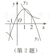 2. (2024广州)函数$y_{1}=ax^{2}+bx+c$与$y_{2}=\frac{k}{x}$的图象如图所示,若$y_{1}$,$y_{2}$均随着$x$的增大而减小,则$x$的取值范围是 (